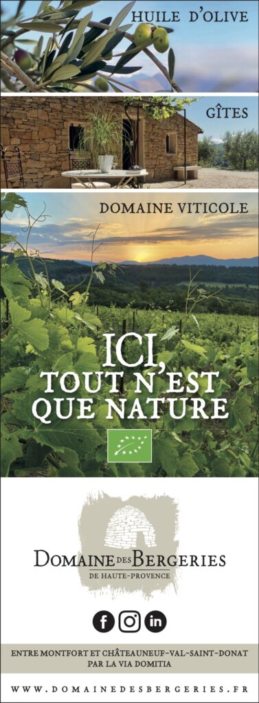 Ici, la beauté naturelle du site, associée à une farouche volonté de produire des vins authentiques, donne naissance à des cuvées 100% bio. L’altitude (580 m) du vignoble est un atout supplémentaire pour bénéficier d’amplitudes thermiques déterminantes pour l’excellence de ses raisins. Le Domaine est également un site oléicole avec ses 250 oliviers. Enfin il est le premier établissement d’œnotourisme des Alpes-de-Haute-Provence.