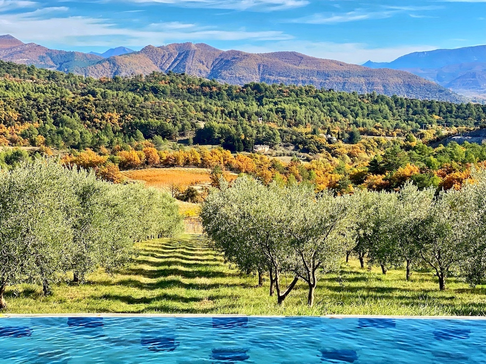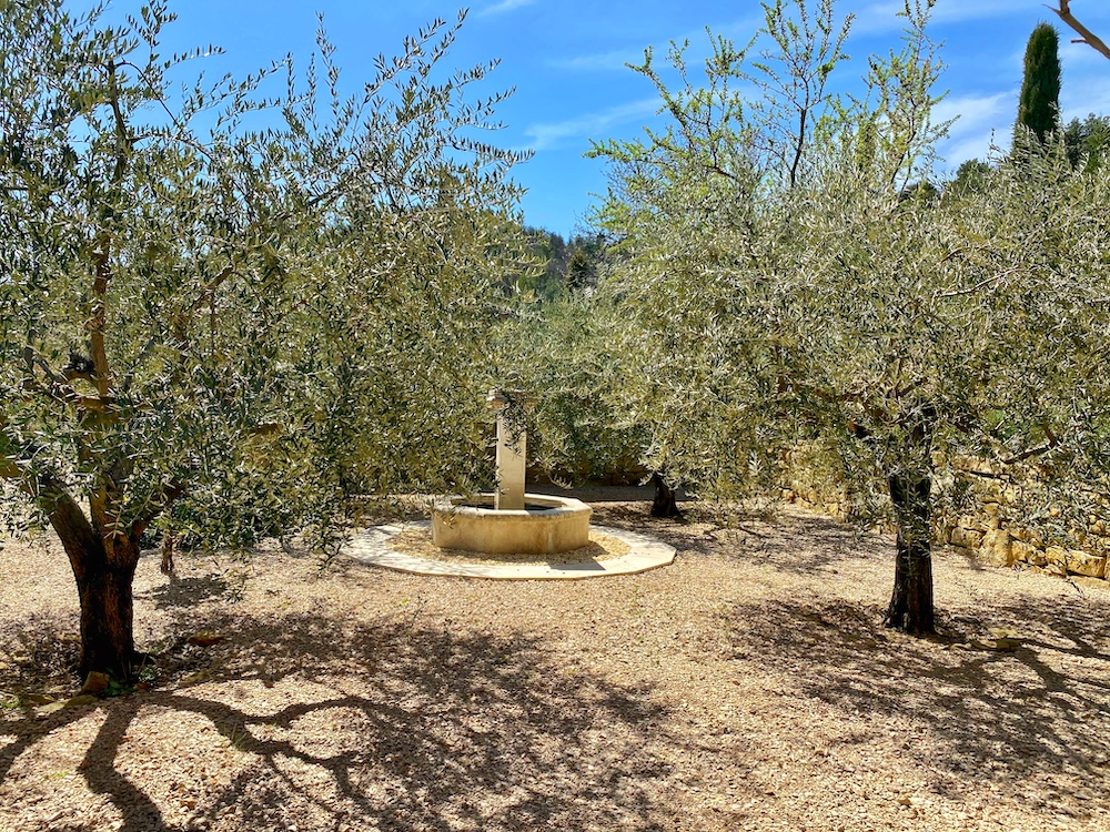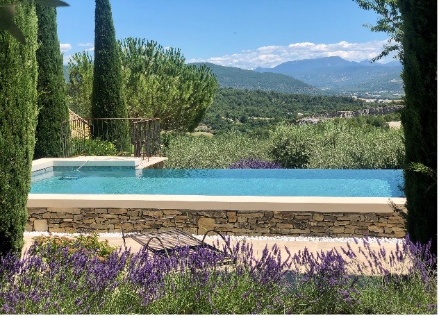 La bergerie possède également une piscine privative qui offre une vue splendide sur les vignes et la placette où se trouve une fontaine et des oliviers !